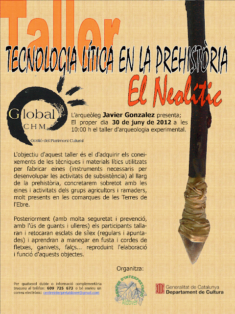 El passat dia 30 de juny de 2012 a les 10:00 h l'arqueòleg Javier Gonzàlez ens va fer gaudir d'un taller d'arqueologia experimental.